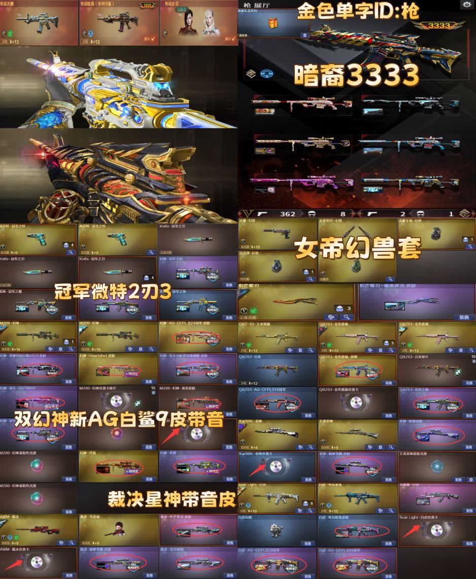 300豆❤金色ID:枪❤️幻神新AG白鲨9皮带音❤女帝幻兽-暗裔3333❤顶配副手❤蝶刃冠刃3