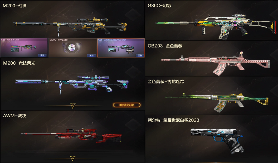 爆破装✨幻神电流骇客白鲨音效卡✨竞技荣光裁决G36C幻影QBZ蔷薇金色蔷薇+白鲨柯尔特✨4防王者魅影