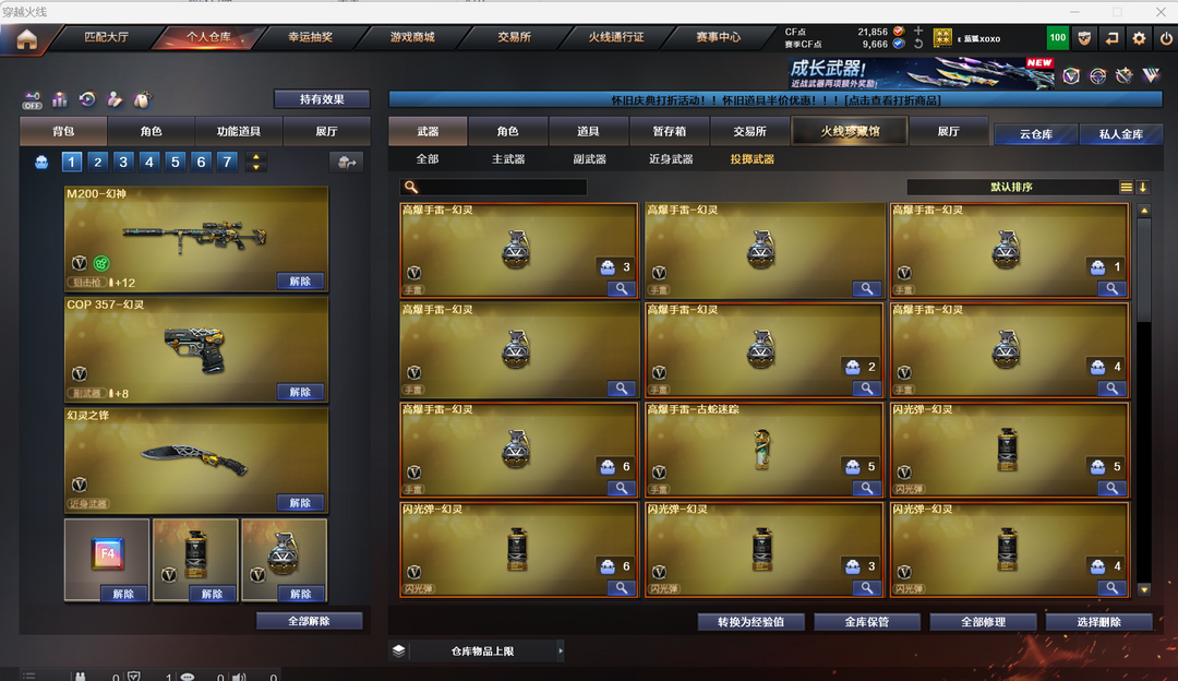 北部虐菜号,幻神+幻神音效卡,幻灵cop,7套幻灵手雷,qbz金色蔷薇,4防角色影豹,HK417朱雀