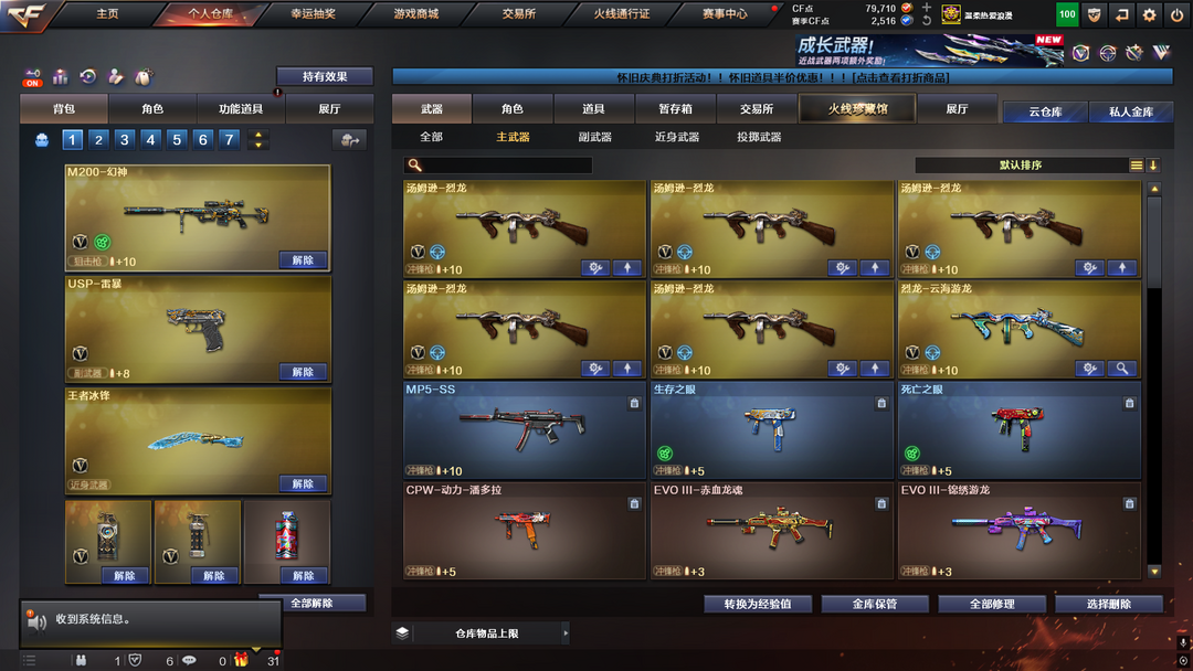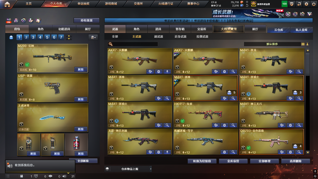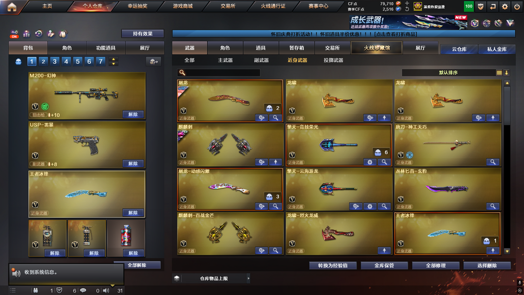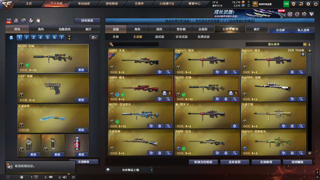 装备描述:王者武器:王者冰锋;王者星神-觉醒版;王者之怒-觉醒版;王者之魄-觉醒版 英雄武器:Barrett-毁灭;Barrett-碧霄极光;Barrett-碧霄极光;高爆手雷-玄豹;丛林匕首-玄豹;烟雾弹-玄豹;闪光弹-玄豹;机械迷城-穹宇;AWM-裁决;手雷-云海游龙;烈龙-云海游龙;擎天-云海游龙;龙啸;Kar98K-星神;高爆手雷-幻灵;闪光弹-幻灵;烟雾弹-幻灵;龙啸-烈火龙威;天神-动感闪耀;屠龙-动感闪耀;手雷-动感闪耀;烈火-动感闪耀;烟雾弹-神工天巧;闪光弹-神工天巧;高爆手雷-神工天巧;USP-神工天巧;M4A1-神工天巧;唐刀-神工天巧;无影-神兵利器;AK47-火麒麟;AK47-B-常胜将军;白虎-电玩蓝兔;麒麟刺;AWM-天龙;烟雾弹-竞技荣光;闪光弹-竞技荣光;高爆手雷-竞技荣光;M200-竞技荣光;USP-雷暴;柯尔特-竞技荣光;擎天-竞技荣光;QBZ03-金色蔷薇;沙鹰-修罗;加特林-炼狱;M200-幻神;HK417-朱雀;汤姆逊-烈龙;AA-12-雷霆;屠龙;9A91-烈火;M4A1-黑骑士;M4A1-黑龙