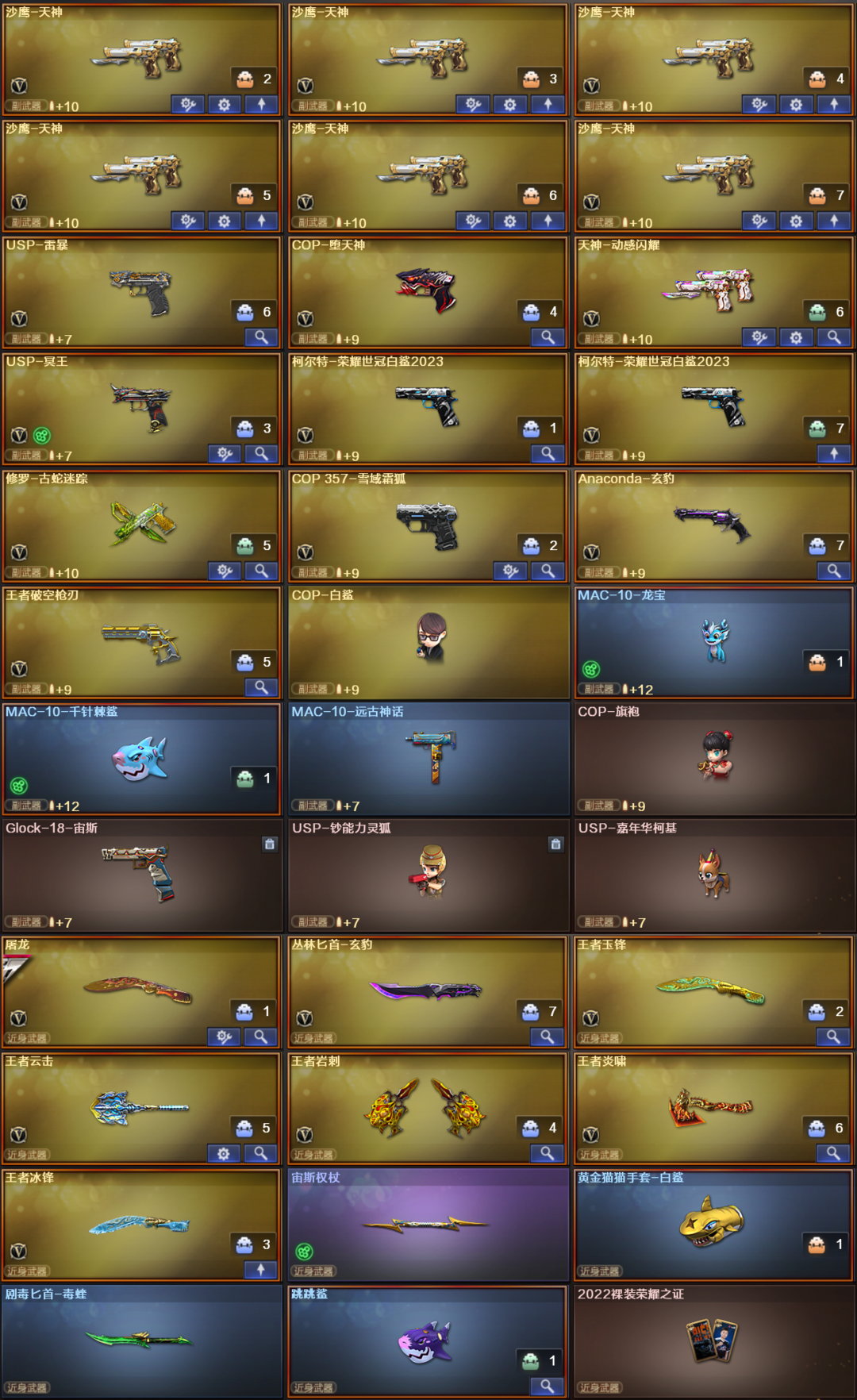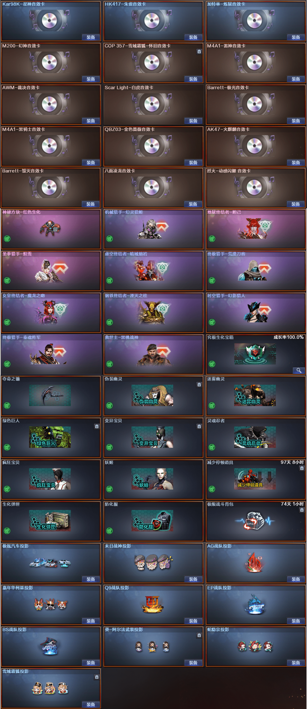 限制: 租号1次及以上 | 撤单率<10%才可租用此帐号装备描述:双全装:15音效卡,金名,四防曼珠沙华+荆棘,六烈六盘,宇宙万象,枪娘暗刃,蛇影双骄,终结者猎手全皮肤,满级满配八面凌龙,USP冥王,COP雪域霜狐,王者破空,黄金猫猫手套白鲨,MAC10龙宝,MAC10千针棘鲨,法玛斯天戎,G36C幻影,幻神星神裁决,七套玄豹雷。