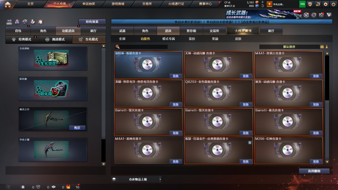 装备描述:百v影煞艾莉莎幻神炼狱音效卡,G36幻影qbz云龙六列蝴蝶爽玩生化爆破,幻神皮肤炼狱皮肤双蝴蝶刀双娃娃雷