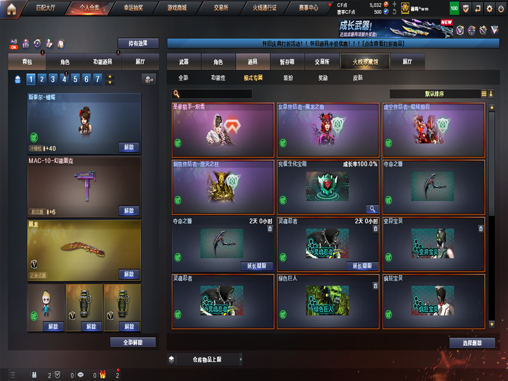 限制: 撤单率<60%才可租用此帐号装备描述:圣泉猎手-炽雪 虚空终结者-暗域熔岩ぃ斯泰尔蝴蝶6烈龙 生化不退包 兔囡囡 职业选手 捕食者之眼 生化觉醒不换弹 白虎-电玩蓝兔ぃ雷暴全套ぃHK417朱雀ぃ王者之城 王者蔷薇ぃQBZ03金色蔷薇ぃUSP雷暴 COP旗袍ぃ海滩汪汪巴雷特ぃ加特林机械猎手ぃ金色小号ぃ雷神荣耀之魄ぃEVO-Ⅲ赤血龙魂ぃ毁灭神秘黑洞