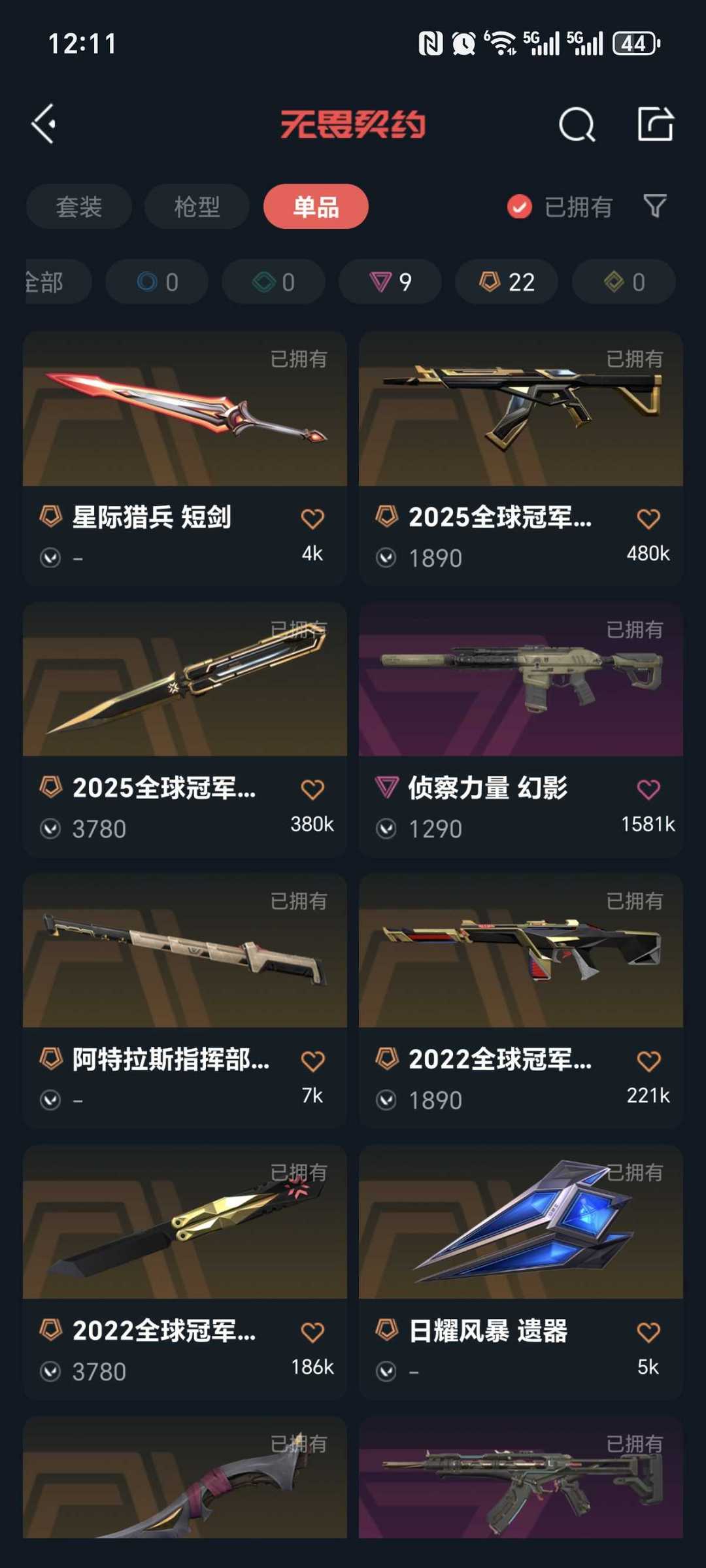 传奇数量:22