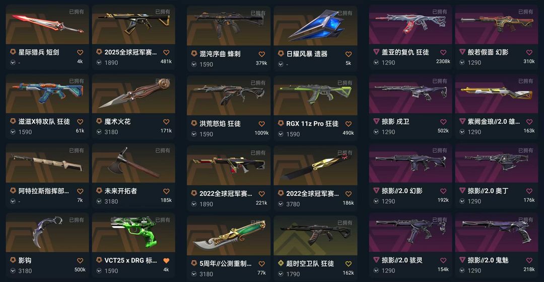 可排✨魔术火花✨25冠军狂徒✨滋滋特攻狂徒✨影钩✨显卡狂徒✨22冠军套✨苍龙之刃✨超时空狂徒✨