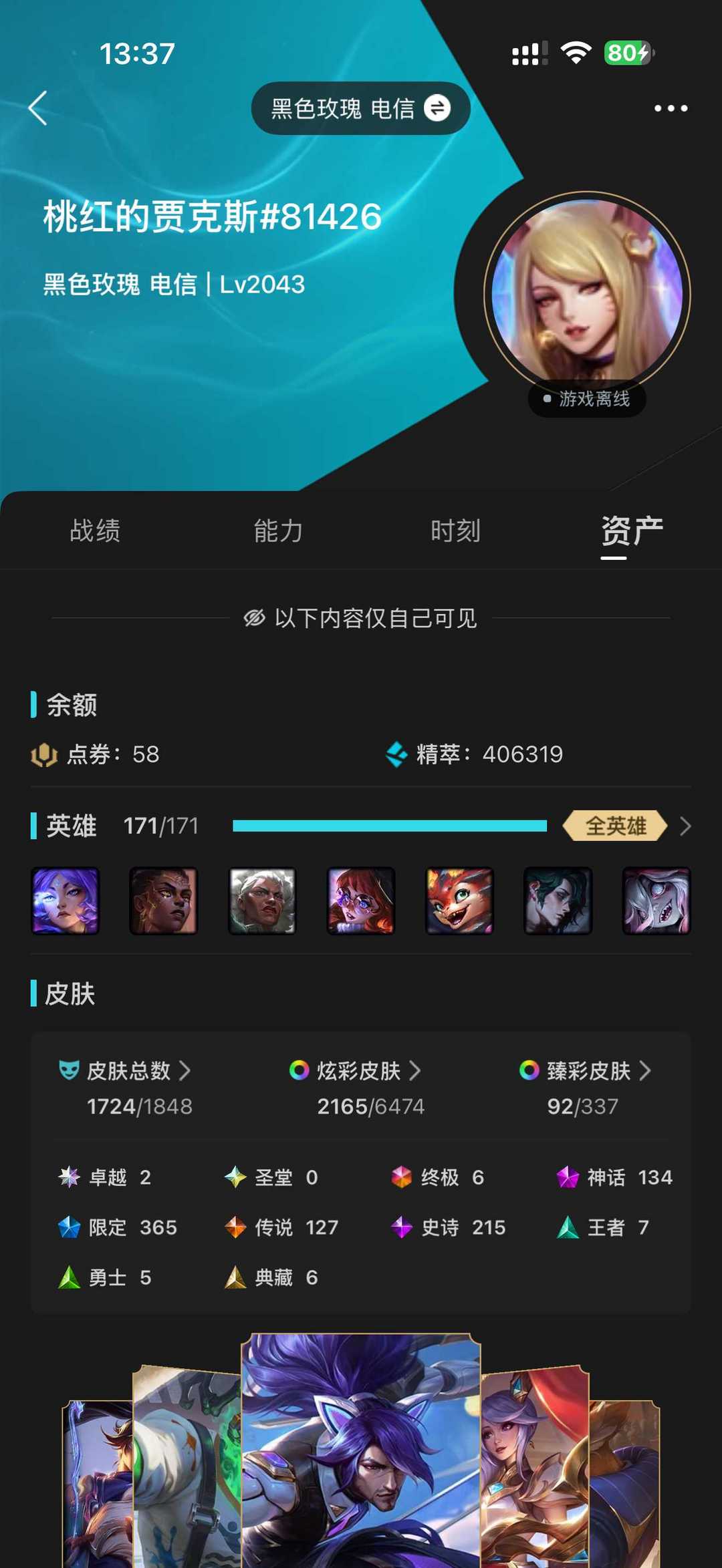 1730/2638/80臻彩♥️名人堂阿狸卡莎双城套剪纸烬至高天幻灵套♥️云顶卧龙之境水云天池