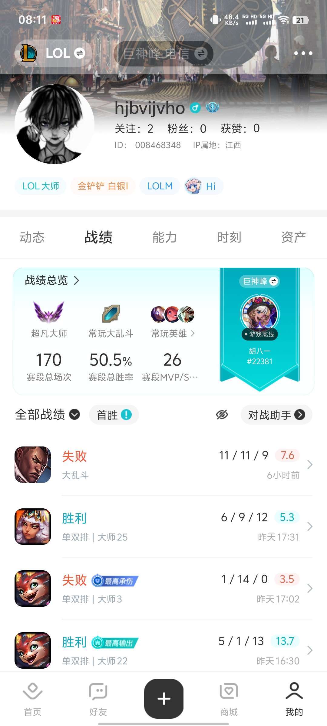 游戏区服:英雄联盟-联盟一区-巨神峰