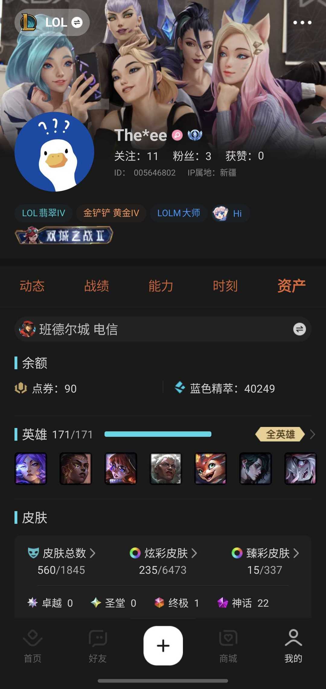 装备描述:班德尔城,可排位,妹子自用号,全英雄+560个皮肤+236个炫彩皮肤+15个炫彩,云顶之弈特效棋盘
