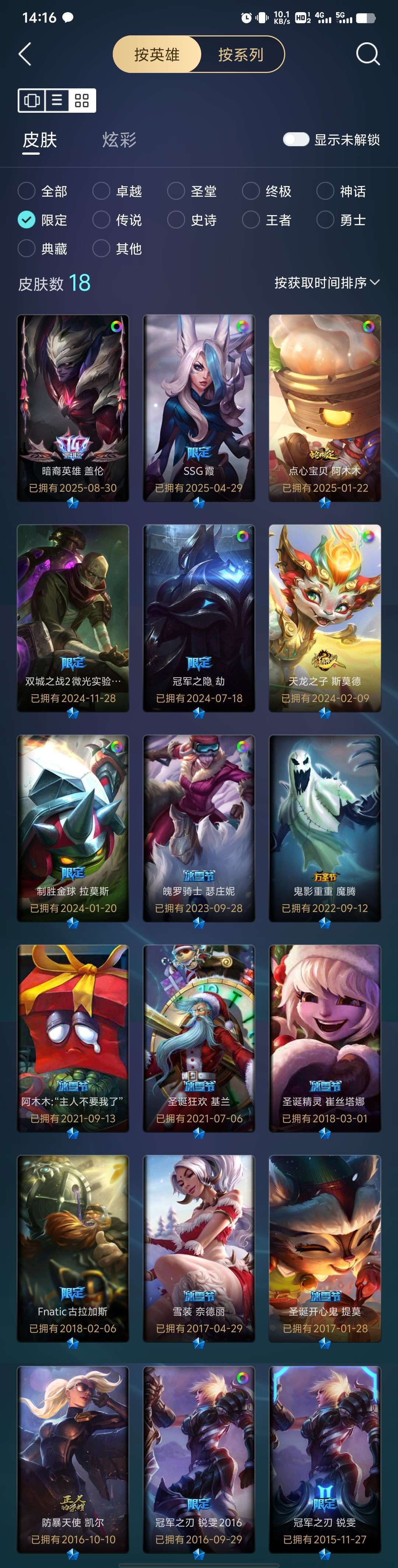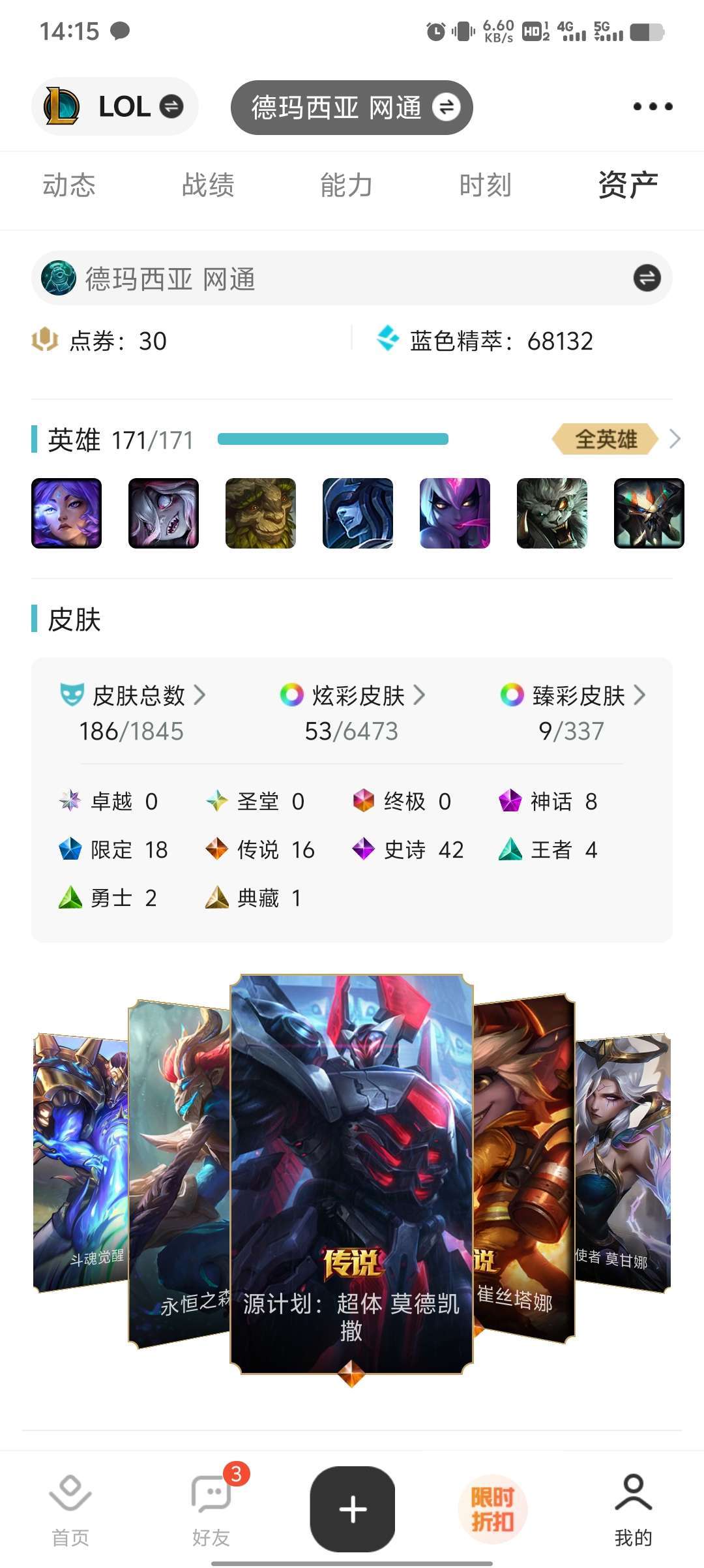 稀有皮30➕,总皮180➕,全英雄
