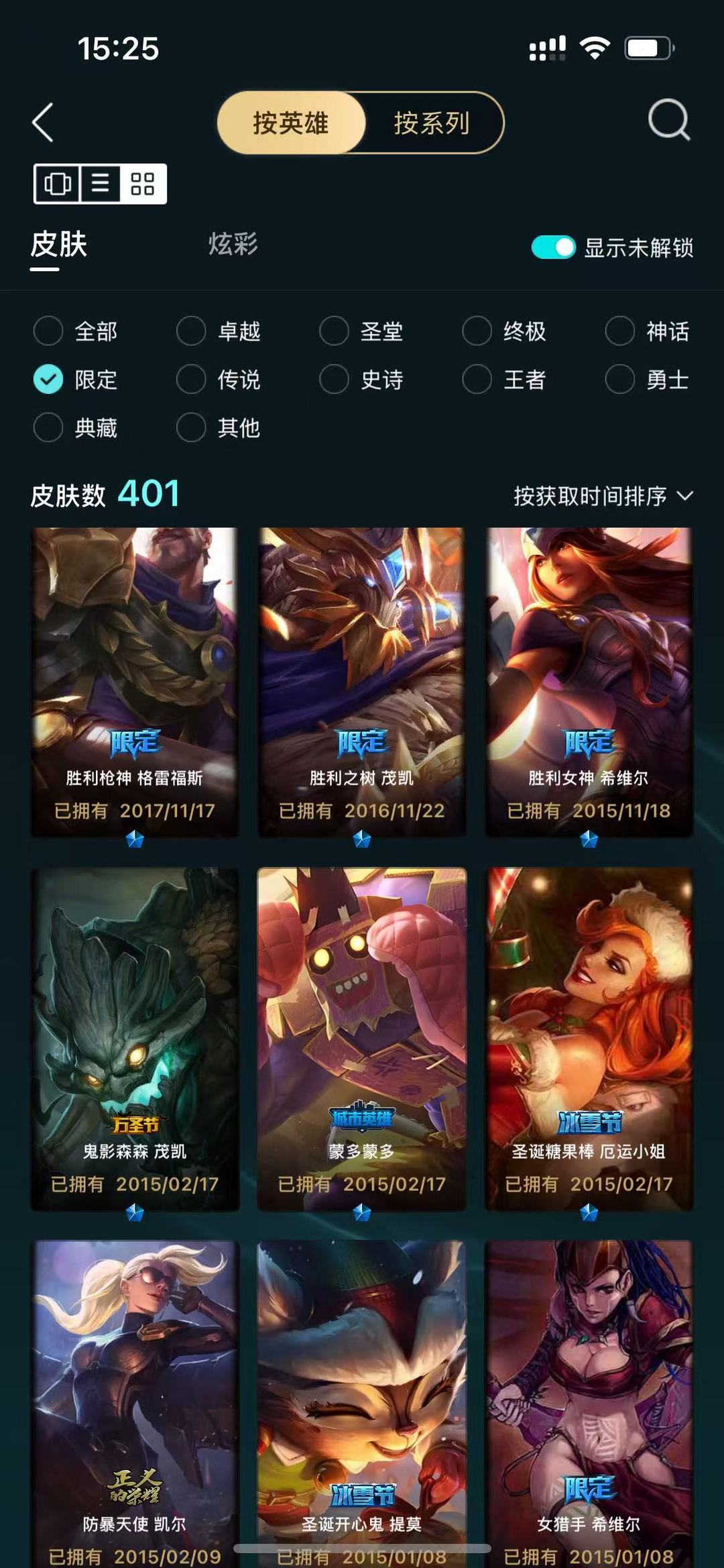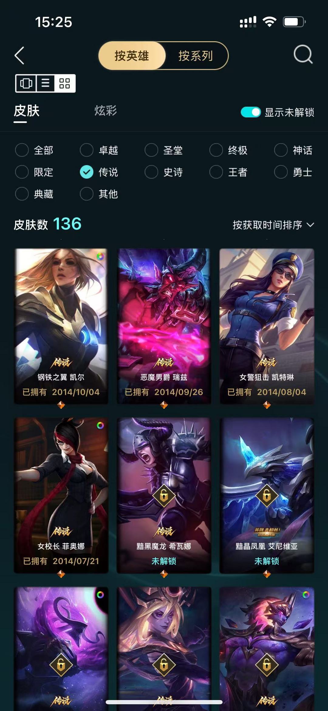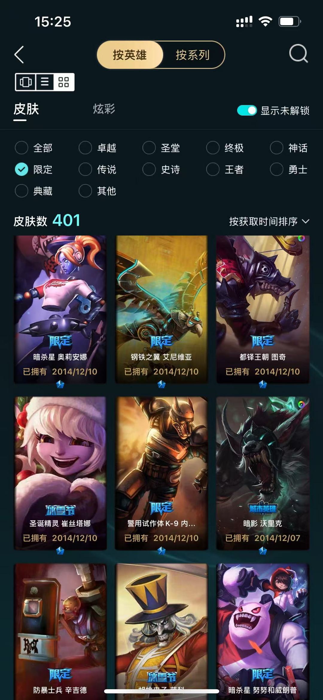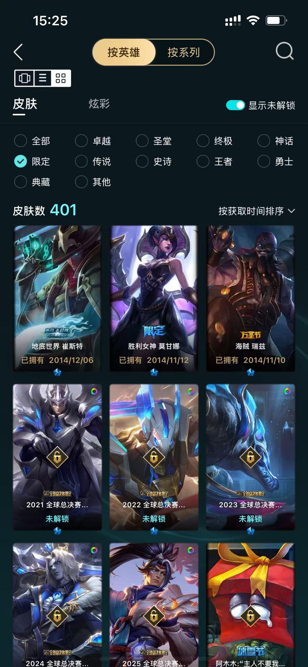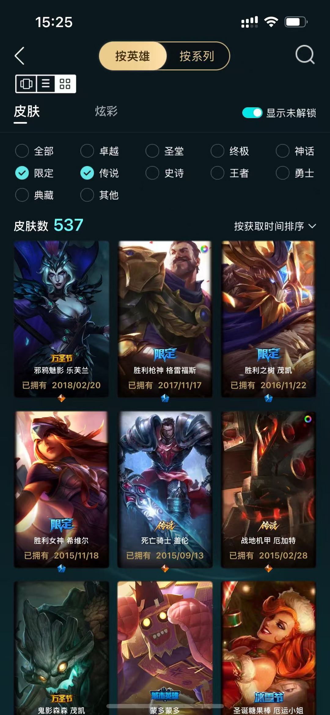 装备描述:111个英雄。100皮肤21限定13传说23史诗