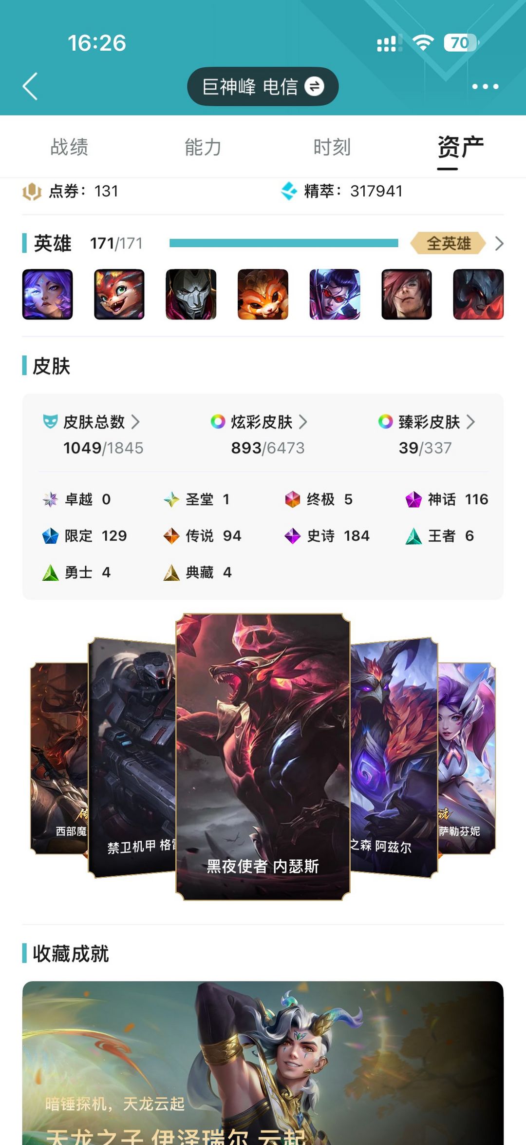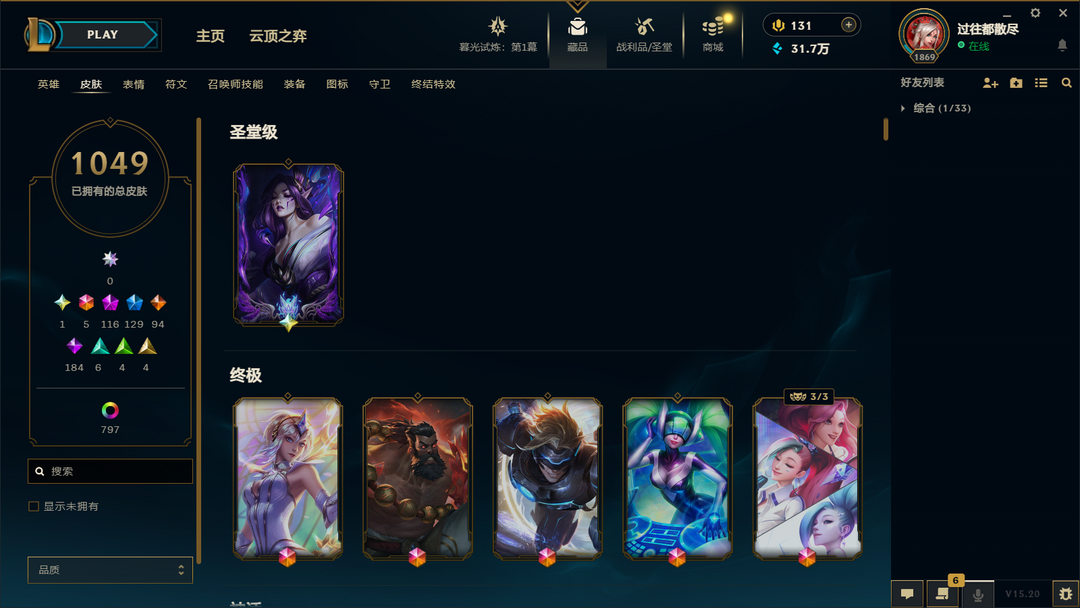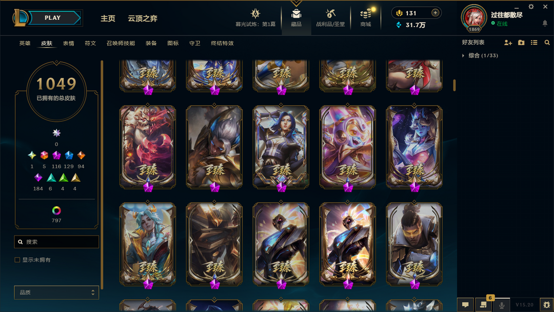 装备描述:★原皮1049★炫彩890★臻彩39★段位实时★真实描述★ 英雄联盟