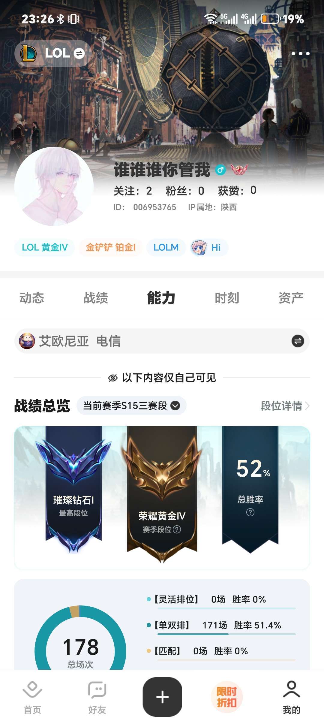 段位:372级 荣耀黄金IV