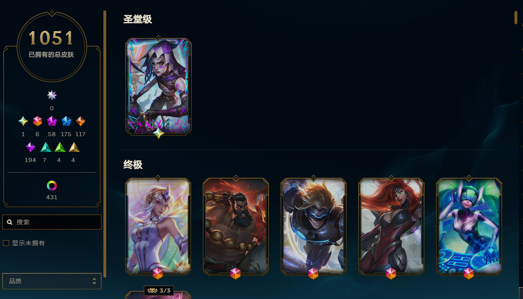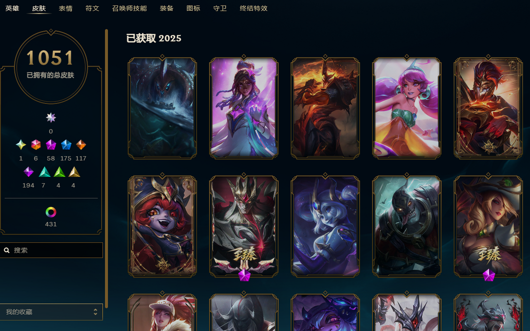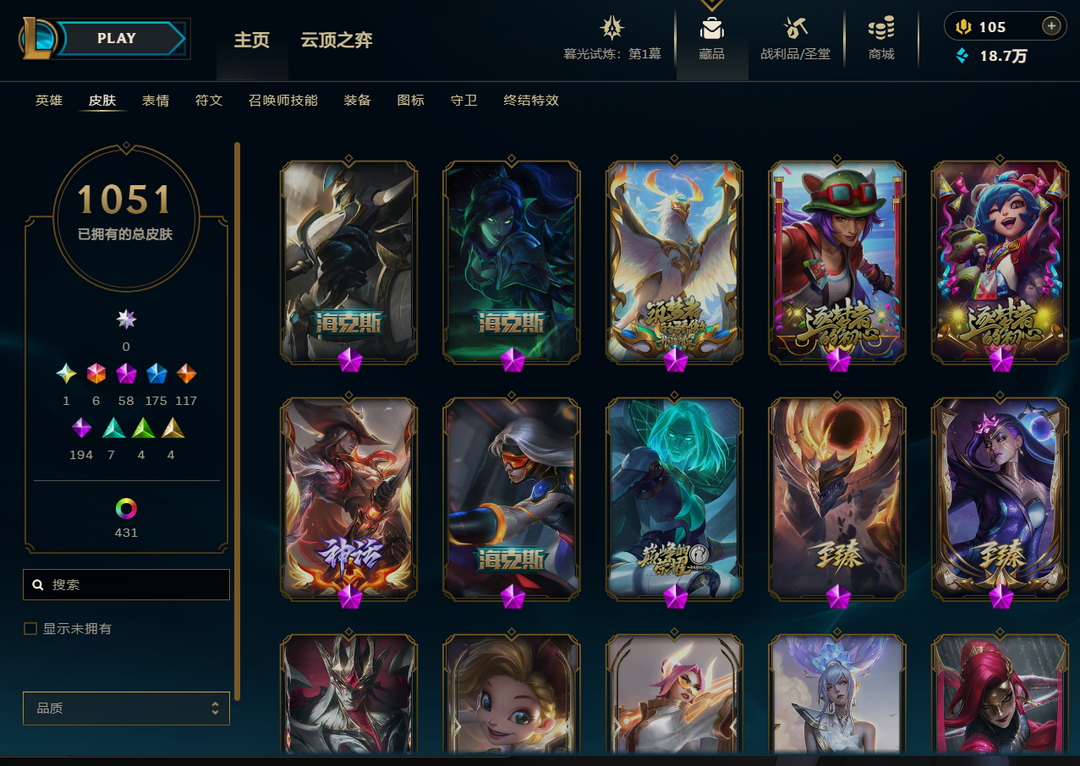 1051皮 431炫彩 45臻彩色 双城全套 双城金克斯 100多T2 永恩全皮肤 多限定IG