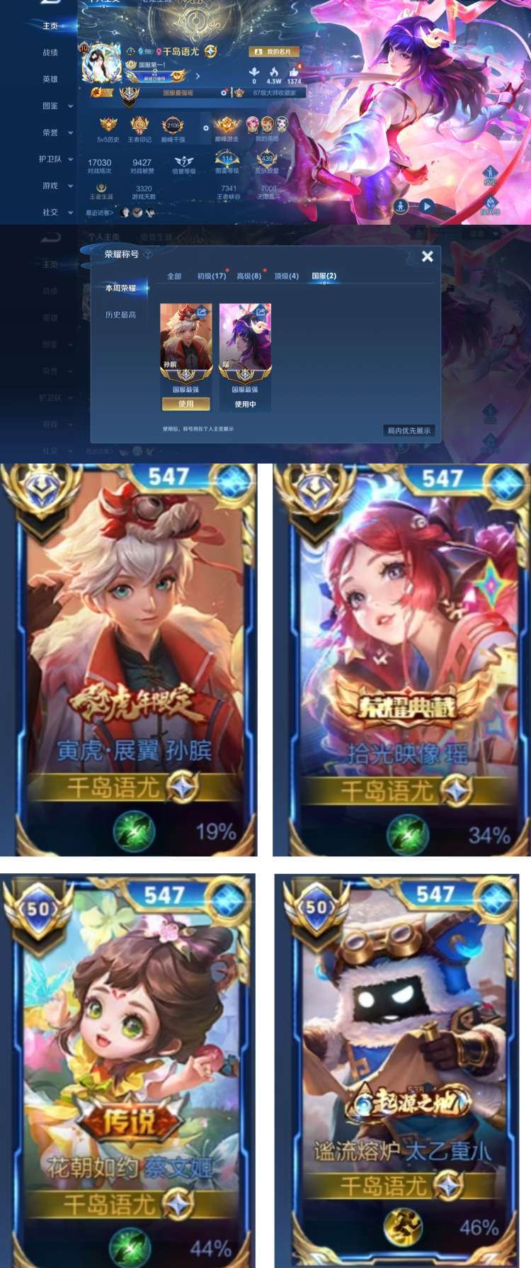【V10 439皮】巅峰千强547名❤️十月在榜双大国服瑶|大国服孙膑❤️禁打巅峰❤️富婆漂亮号