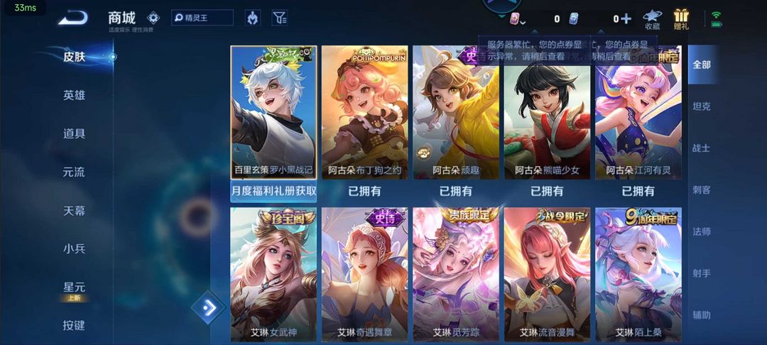 荣耀V10不禁言❤️745皮满皮肤历史国服西施王昭君小乔70段中路❤️满水晶满星元满小兵❤️