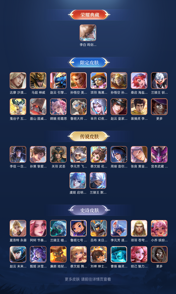 李白典藏韩信无双马可怪盗基德赵云龙限铠哈迪斯极品号
