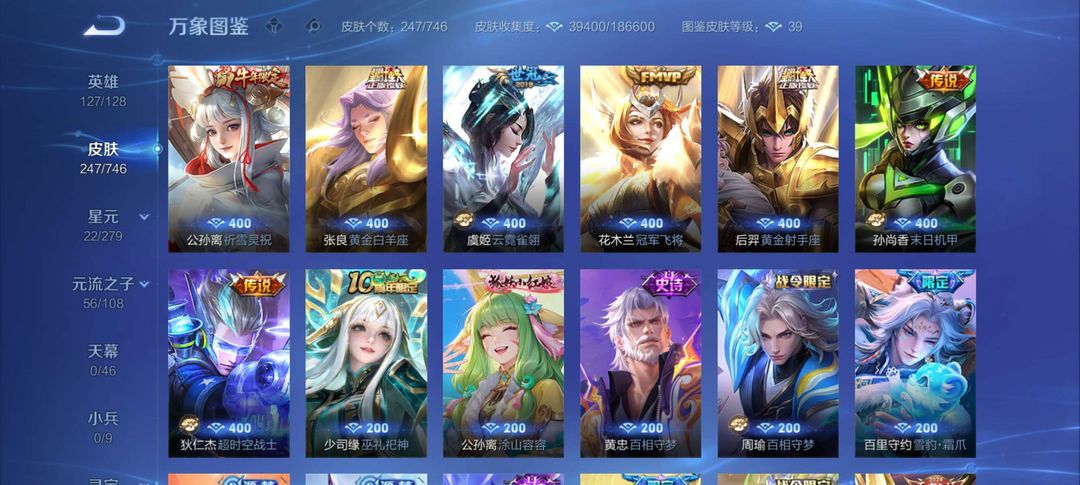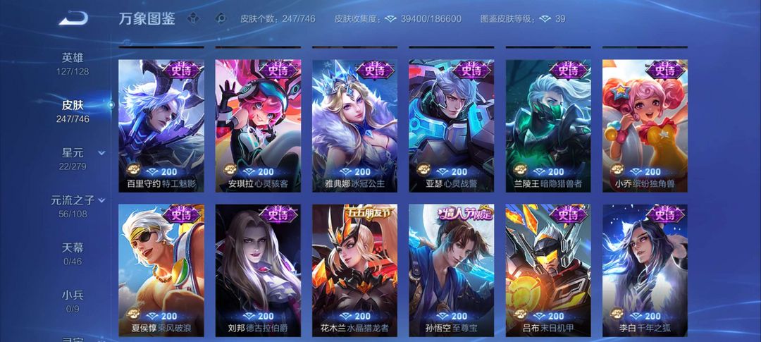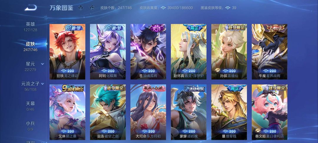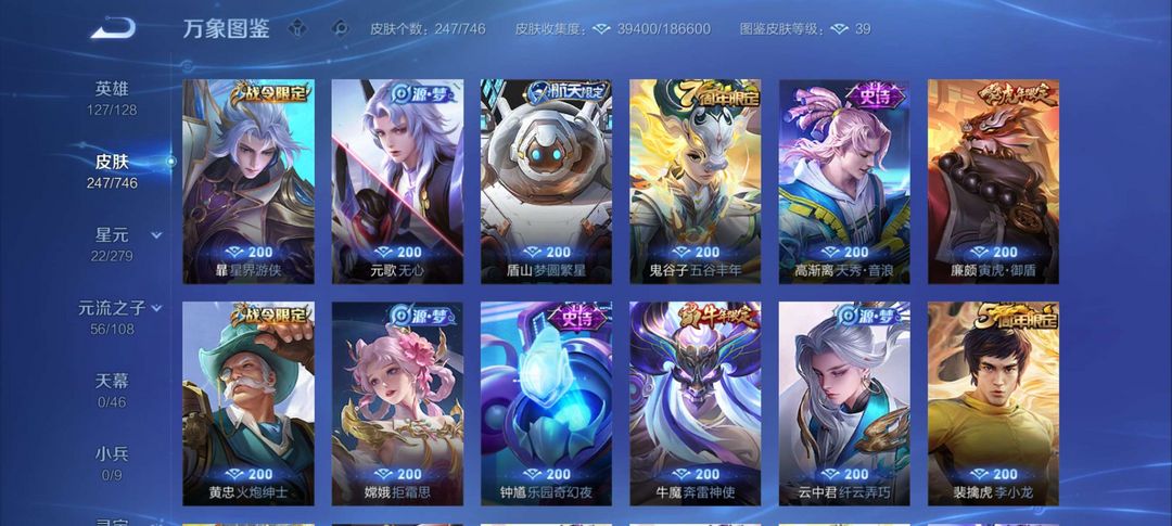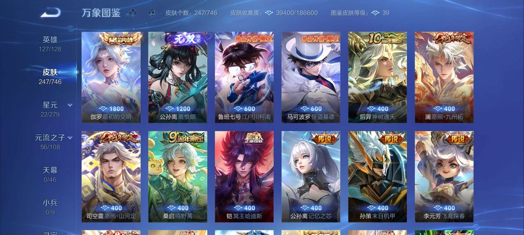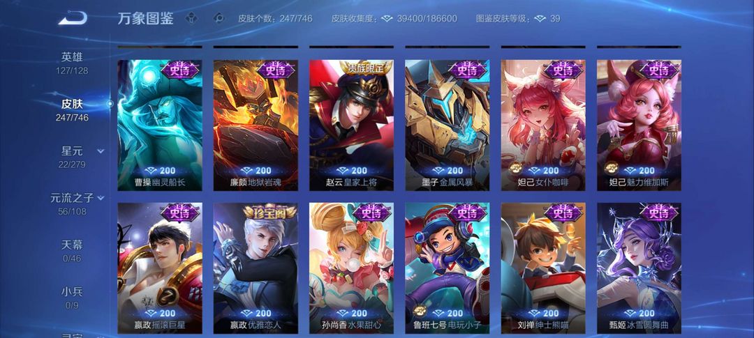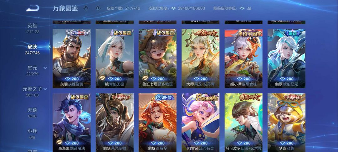 射手神号,离恨烟,雪兔子,基德全套等等,其他分路皮肤也多,至尊宝,榄和司空震年限等