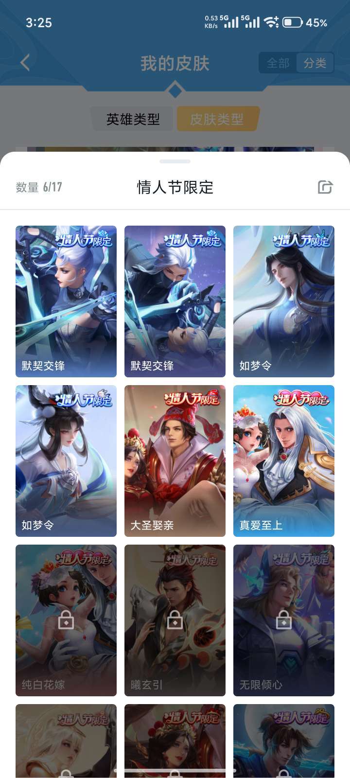 装备描述:V8各大限定皮肤!年限皮肤!鼠年限定!限定皮肤133个! 皮肤总数327!