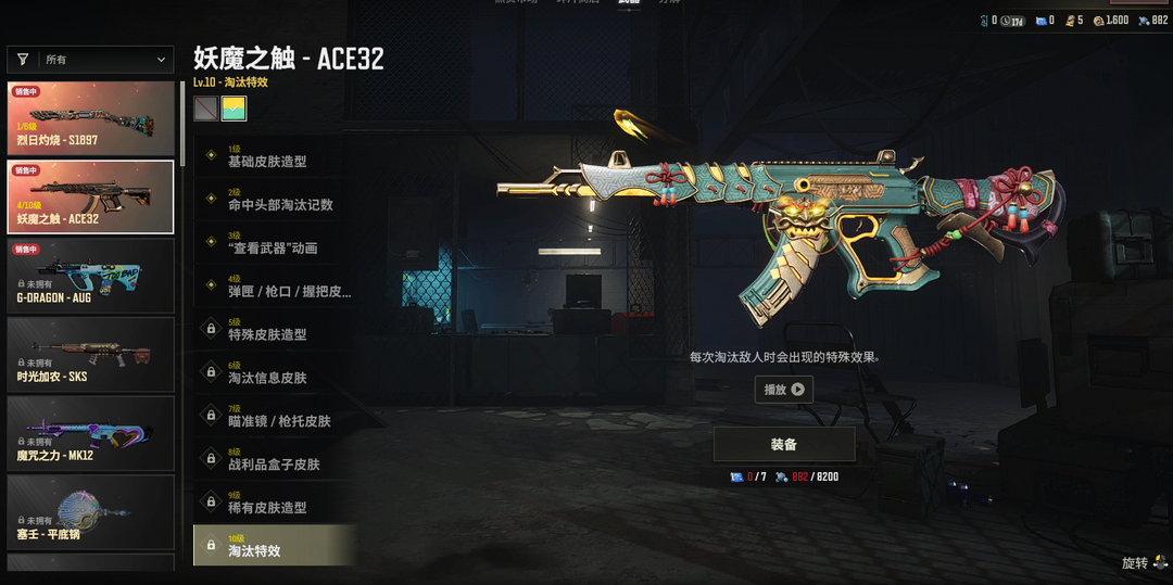 ④级妖魔之触ACE✅异色ACE✅①级烈日烧灼S1897✅湮灭M24✅雪国风光M4✅十字军SKS✅铃儿