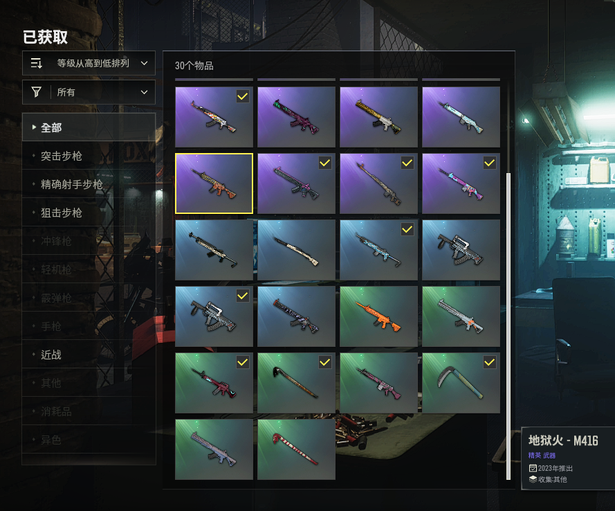 ④级妖魔之触ACE✅雪国风光M4✅湮灭M762✅竞速之道AKM✅镀金SKS✅大理石SLR✅幸运骑士M