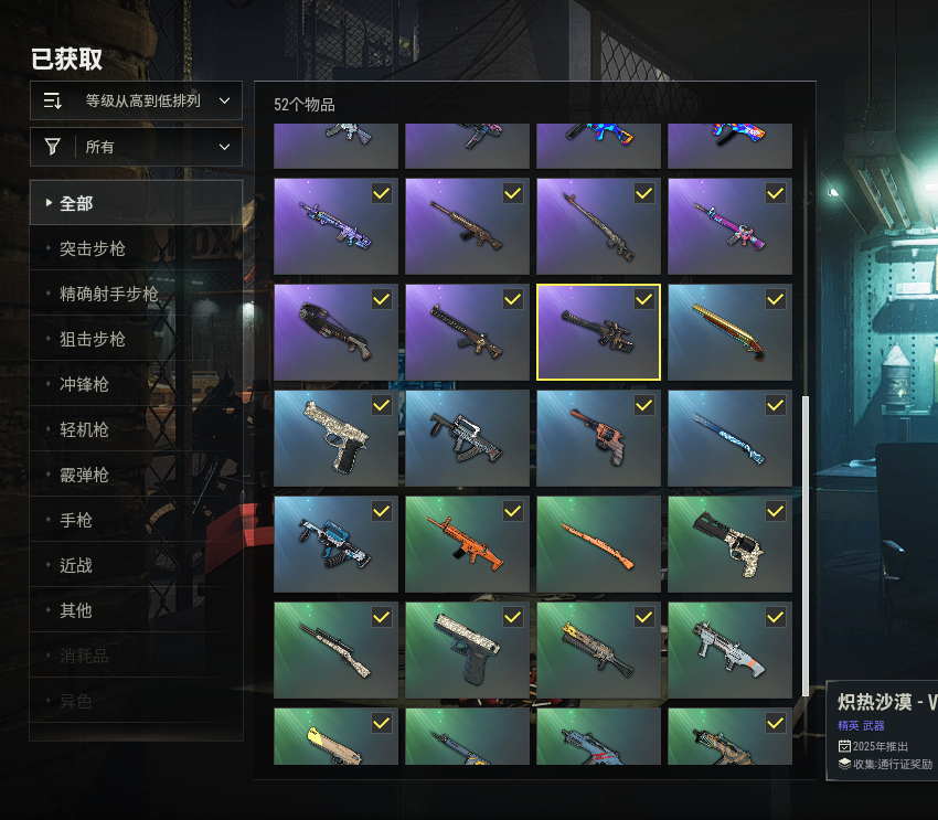 ⑤级孙悟空M24✅鎏金王朝M762✅雪国风光M4✅竞速之道AKM✅十字军SKS✅钴蓝呼号SLR✅魔女