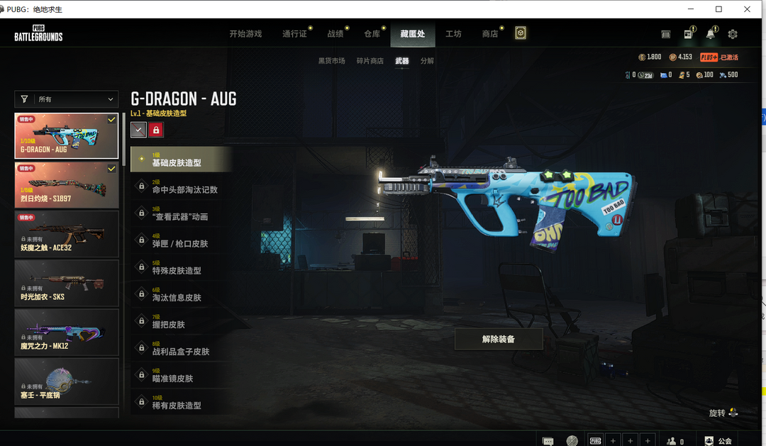 可排位✅成长型权志龙联名AUG烈日灼烧1897✅坏兔子套✅✅兰博基尼✅AUG✅火麒麟✅杜卡迪✅汉娜
