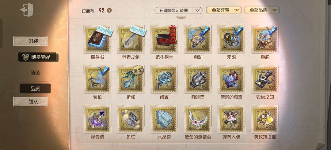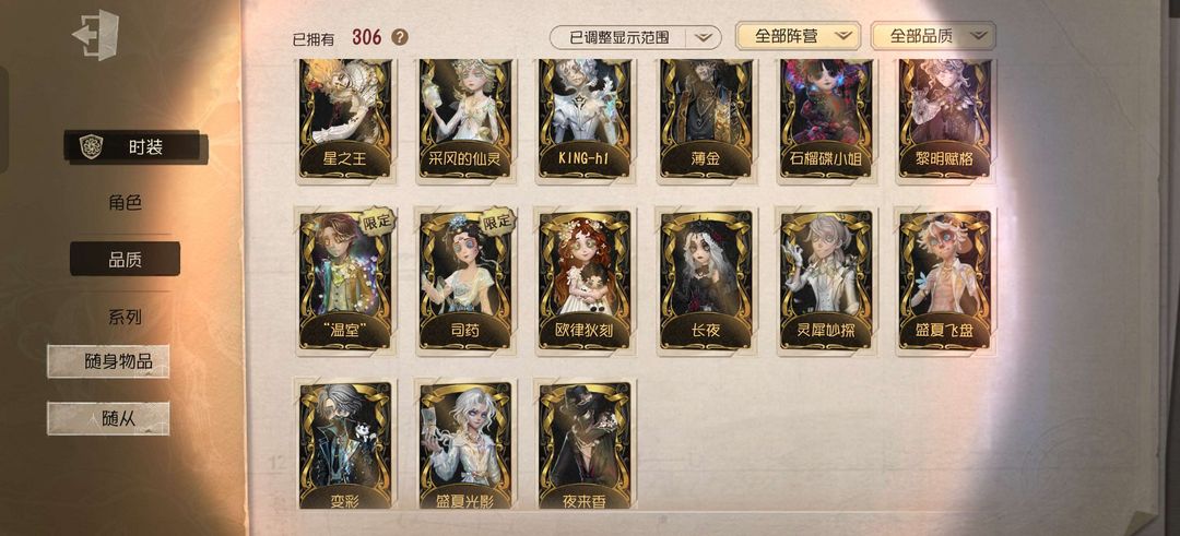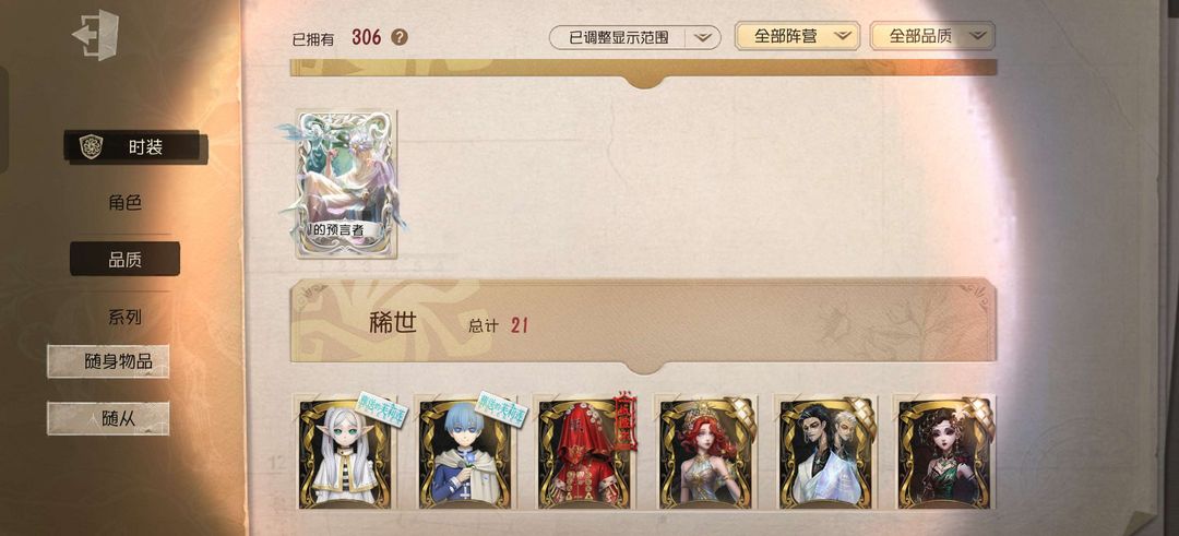 迷雾山庄✨先知虚妄✨先知黯✨小孩二限✨喧嚣金✨隐士二限✨芙莉莲✨辛美尔✨调香聂莫黎✨囚徒二限